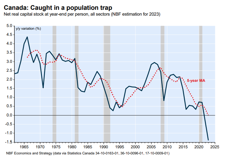 In a Jan. 15 report, which got plenty of media attention, economists at National Bank of Canada declared the country has entered into a “population trap” in which we are somehow stuck with perpetually falling living standards because our stock of capital just can’t keep up.