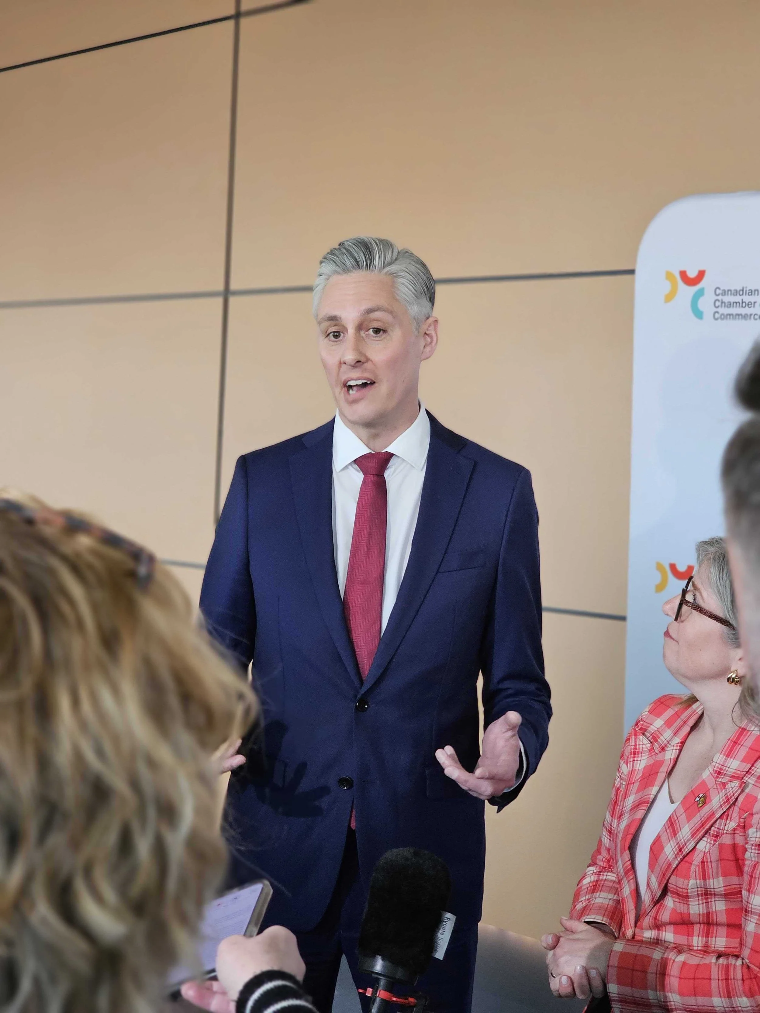 Prince Edward Island Premier Rob Lantz, pictured speaking to media at the Future of Business Summit. / MEANS & WAYS PHOTO